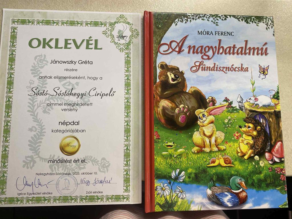 2025. október 10-én Nyíregyháza-Sóstóhegyen Sóstó-Sóstóhegyi Ciripelő versenyt tartottak, ahol mese, vers-próza és népdal kategóriákban mutathatták meg tudásukat a résztvevők. Jánowszky Gréta, a Nyíregyháza-Eötvös telephely növendéke népdal kategóriában indult, mezőföldi népdalokat énekelt. Kiválóan sikerült a kiállása, Arany minősítést szerzett.