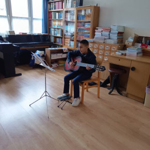 2026. január 15-én tartottuk meg a Sajóbábonyi Deák Ferenc Általános Iskolában, Farkas Dénes gitáros növendékeinek félévi vizsgakoncertjét.