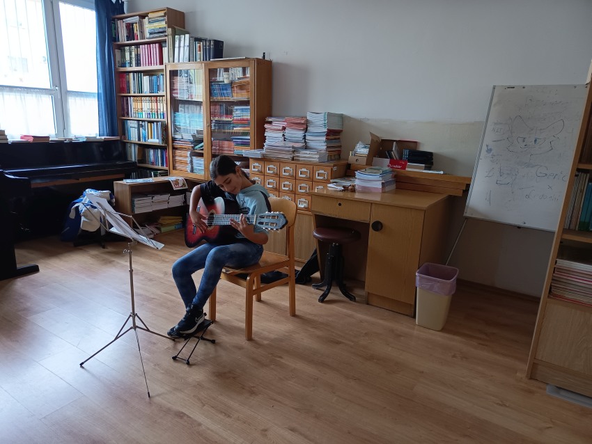Néhányan betegség miatt nem tudtak jelen lenni, így összesen 17 növendék mutathatta meg gitár tanára, illetve az általános iskola igazgatónője Szűcs Miklósné előtt, hogy mit tanultak az első félévben.