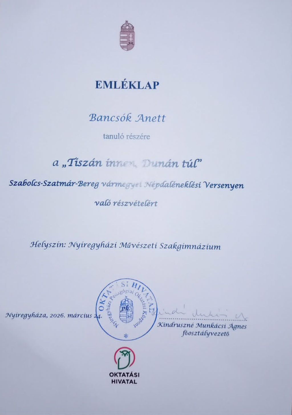 2026.03.24 Népdaléneklési verseny Nyíregyházán