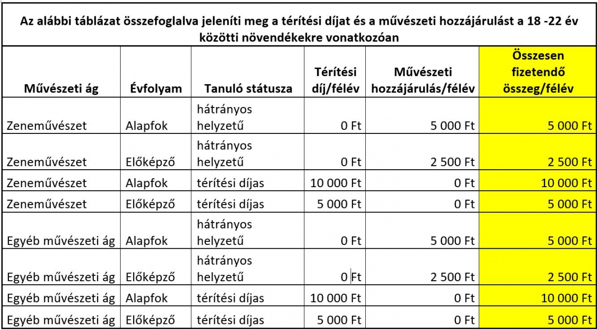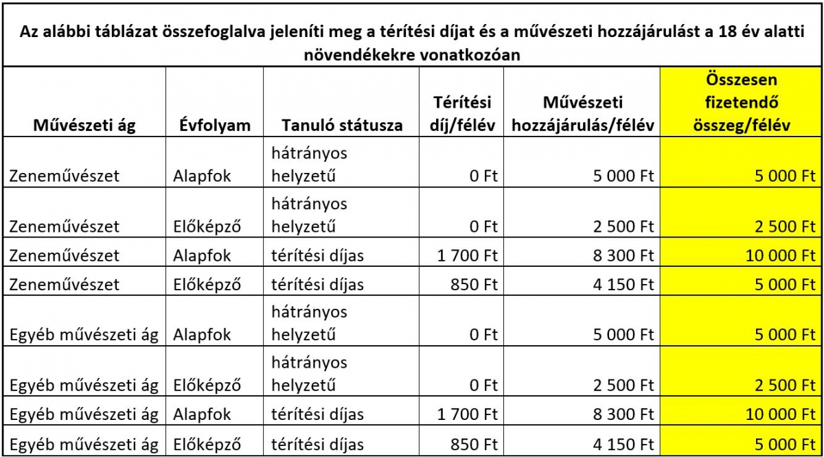 ? Az előképző évfolyamokon a művészeti ágra érvényes tandíj felét kell fizetniük.