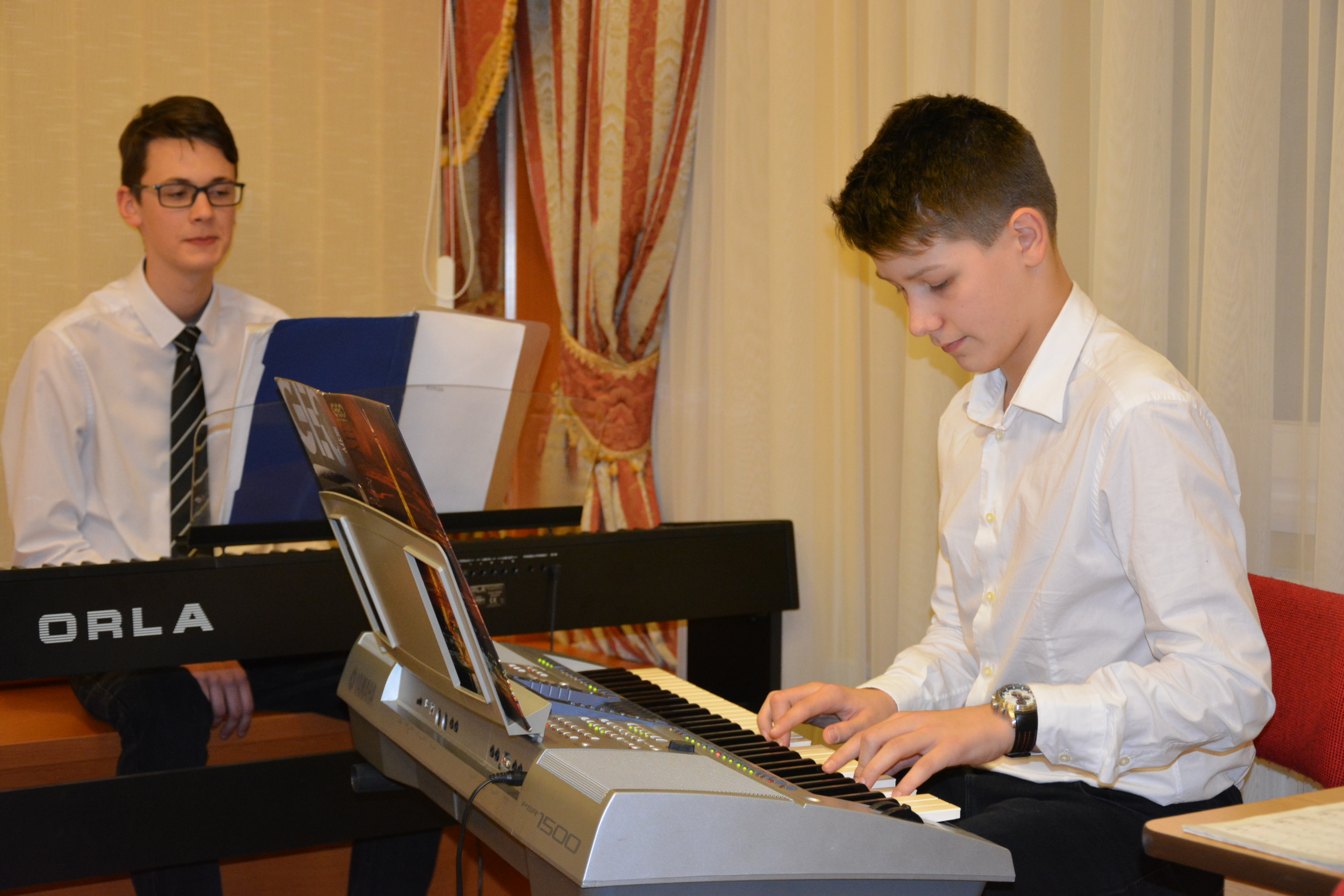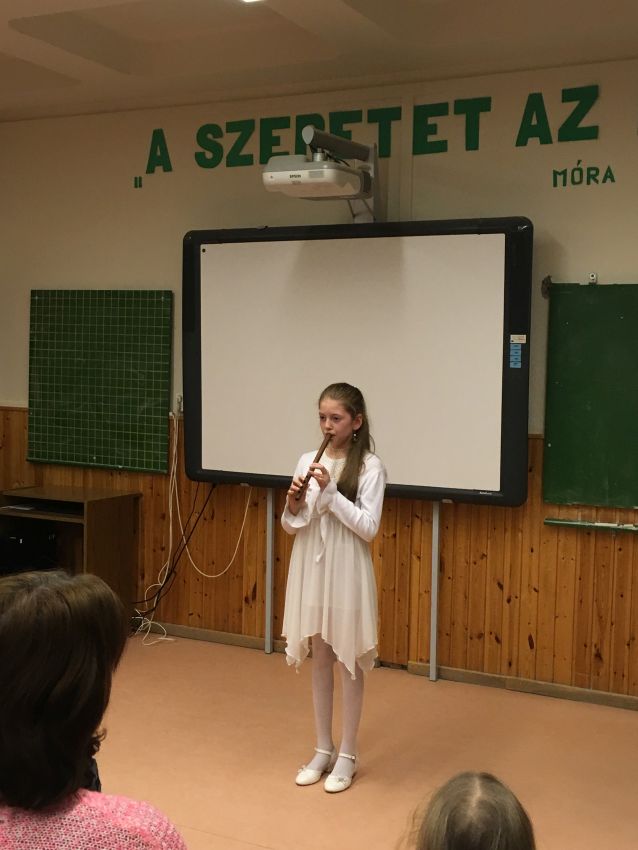 2018.01.31 Félévi népi furulyás tanszaki a nyíregyházi Móra telephelyen 2018. január 31-én 17 órai kezdettel került megrendezésre a nyíregyházi Móra telephely népi furulyás növendékeinek már hagyománnyá vált félévi tanszaki hangversenye. A növendékek a félév folyamán különböző gyermekdalokkal, népdalokkal, székelyföldi dallamokkal és karácsonyi dalokkal ismerkedtek meg. |