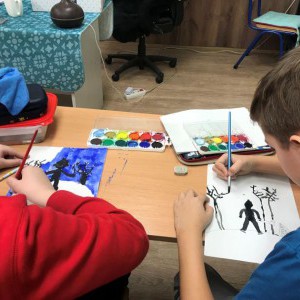 Nagy élmény volt a gyerekek számára, hogy kipróbálhatták a rajzszénnel való munkát is, skicceket vázoltak a segítségével.