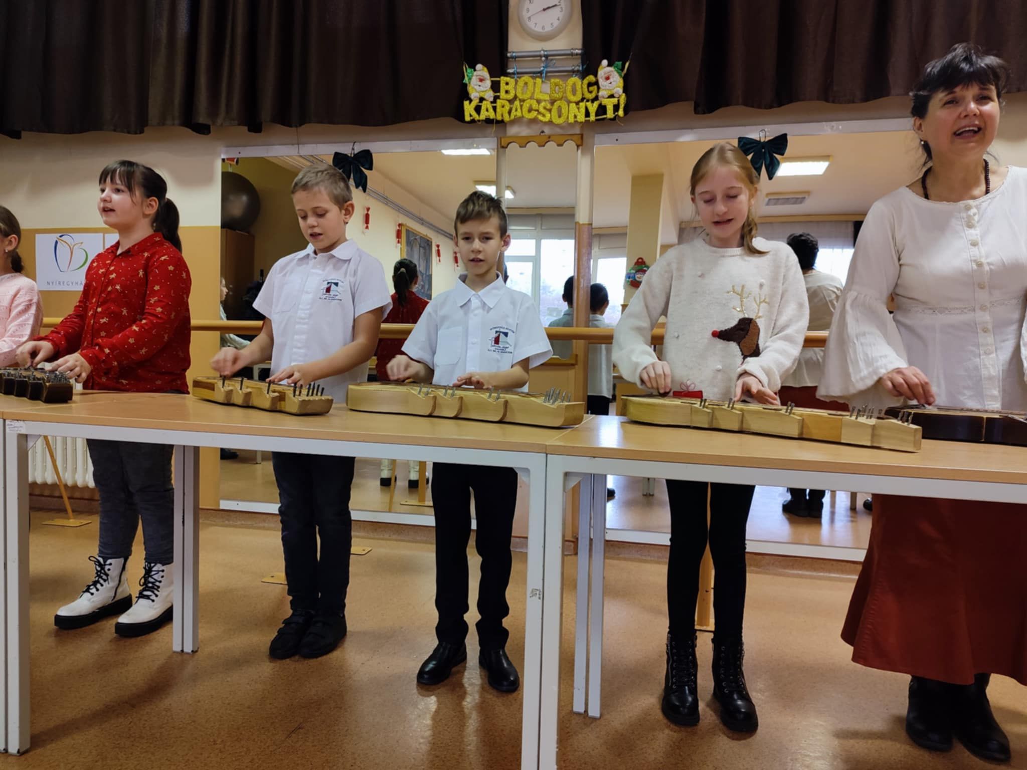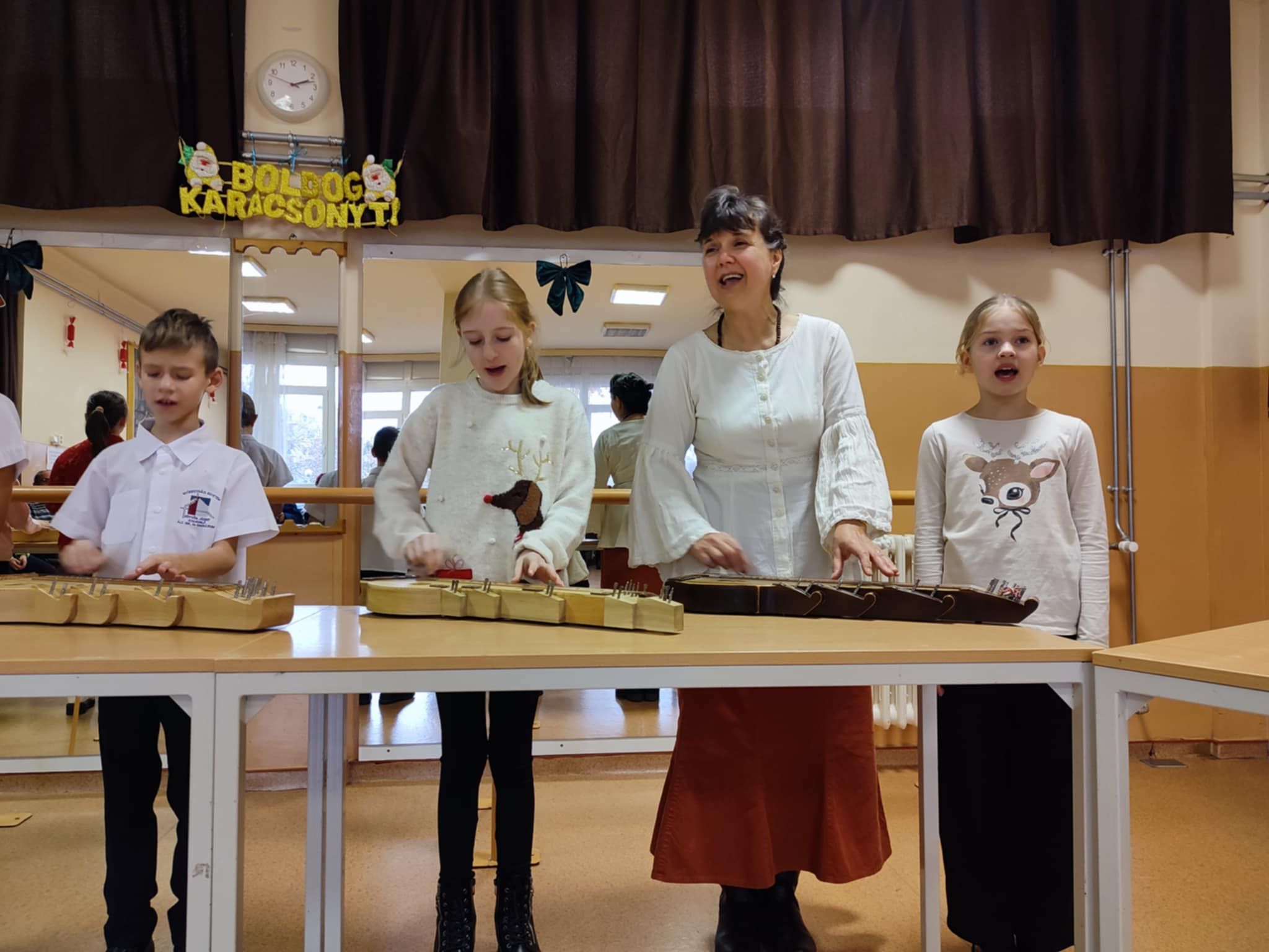 A nyíregyházi Gyertyafény Idősek Klubjában adventi műsort mutatott be Eötvös telephelyünk 15 népi énekes, citerás diákja 2024. december 10-én.