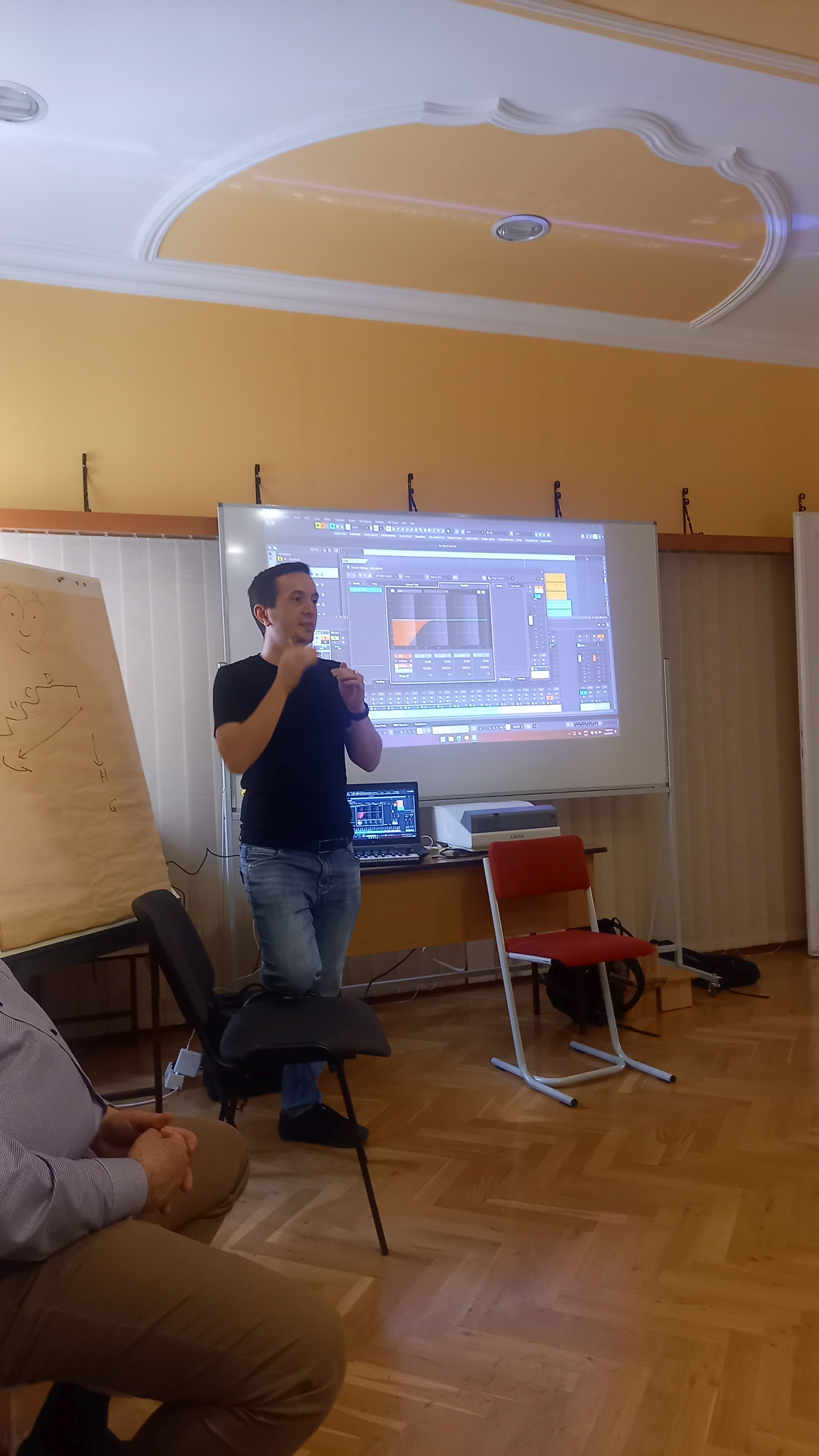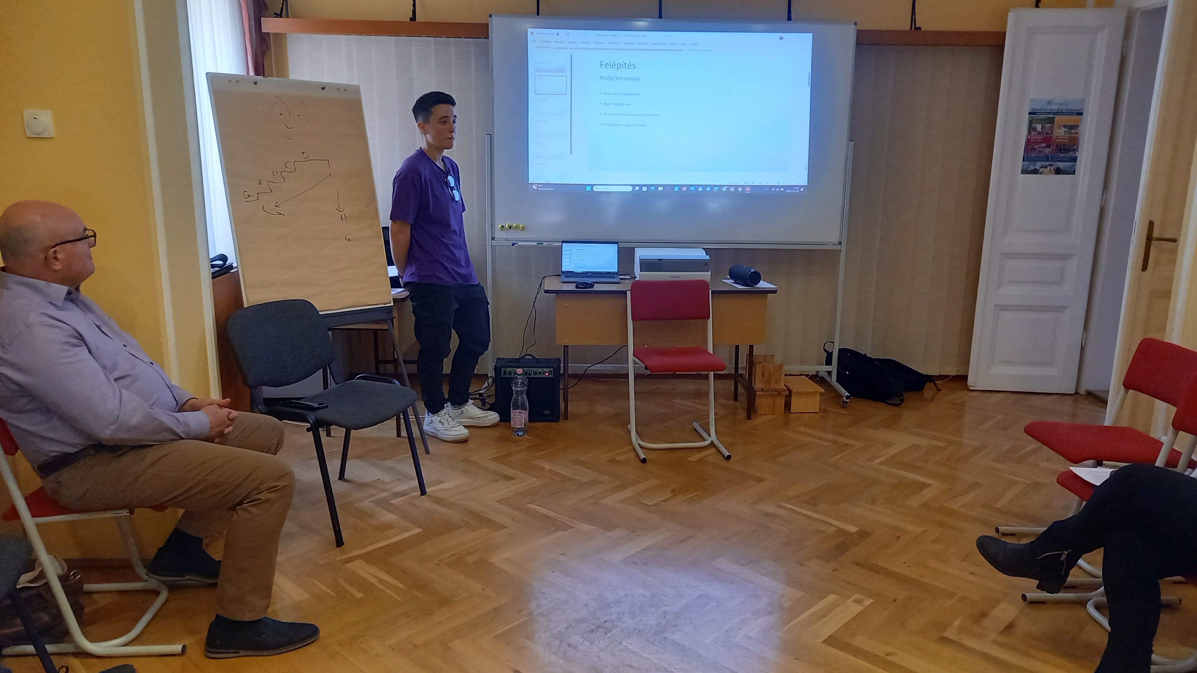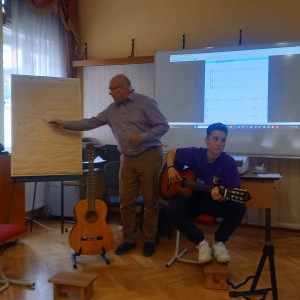 Meghívott előadók mutatták be érdekes, izgalmas projektjeiket elméleti és gyakorlati példákon keresztül. Mészáros Béla igazgató úr bemutatta, milyen – külföldi mintára épülő - módszereket lehet használni egy zeneórán, amelyek előre viszik a tanulást, érdekesség teszik a közös zenélést, amivel létrehozható egy erős közösség. Szentpétery Mózes – volt Garabonciás diák - arról beszélt, hogyan tudunk sikeresen létrehozni egy zenekart, majd Tronka Noah beszélt az intézményen belül működő zenekaráról. Végül Nádor József a zeneszerkesztés alapjairól tartott egy izgalmas előadást.