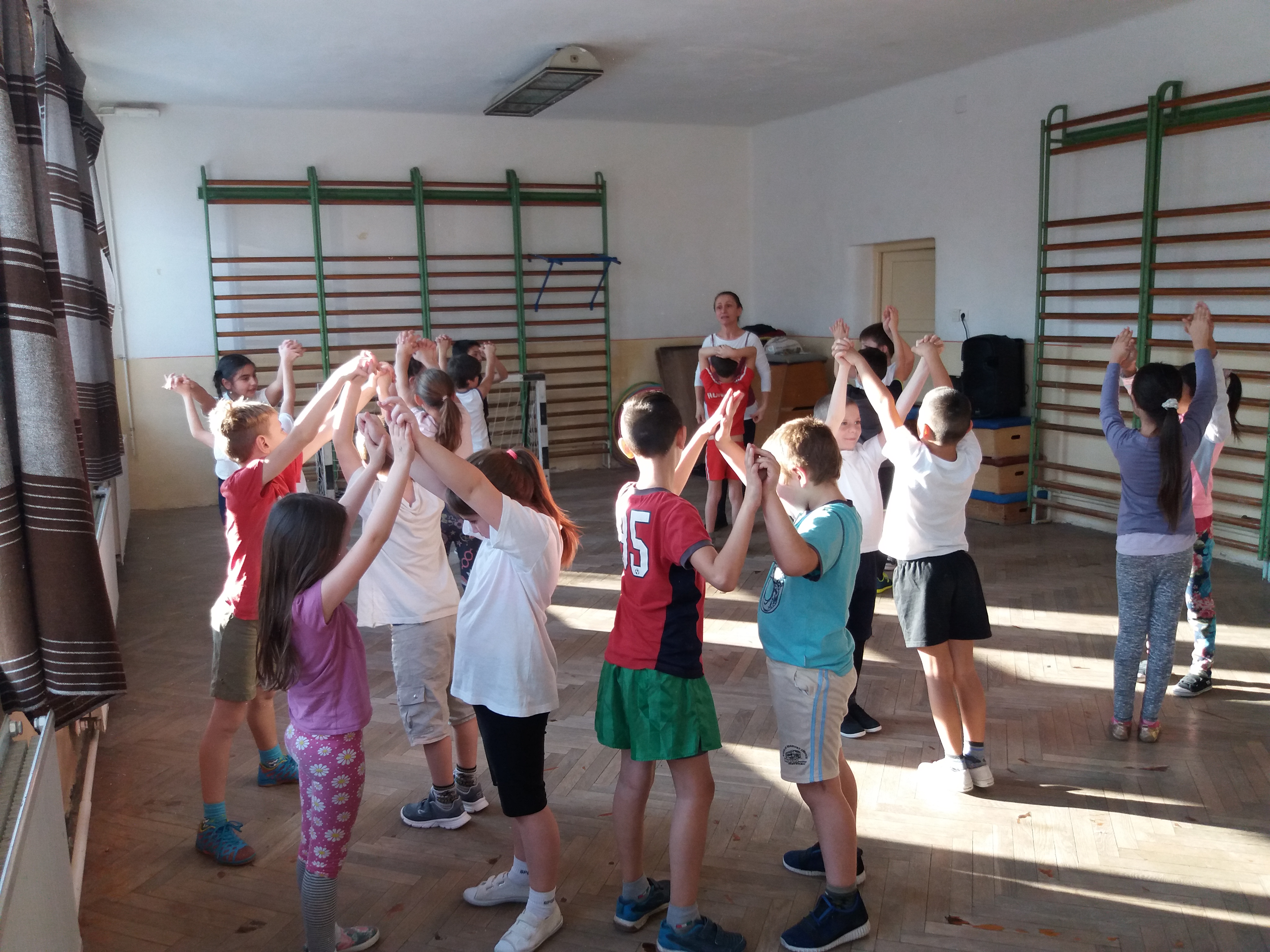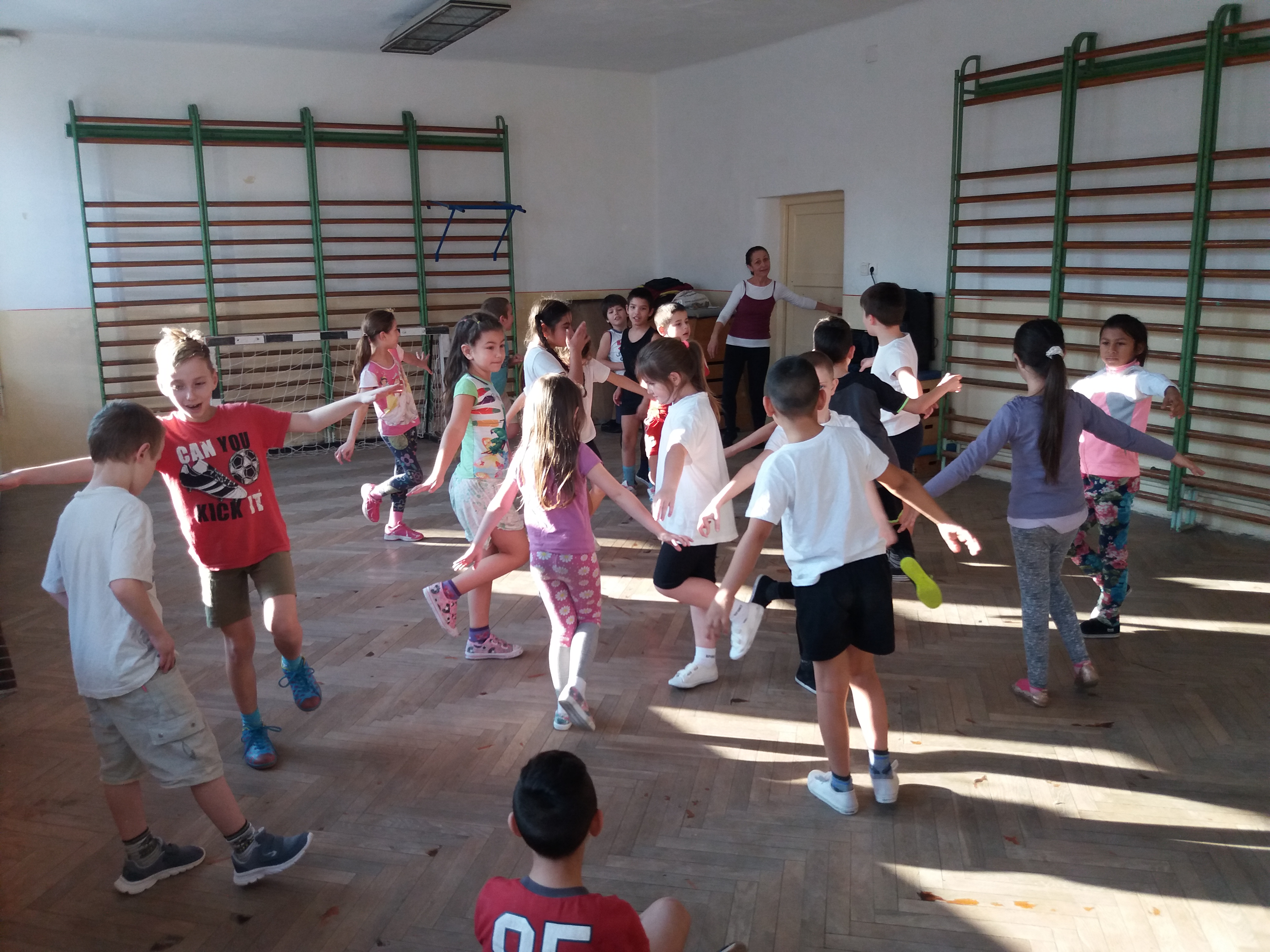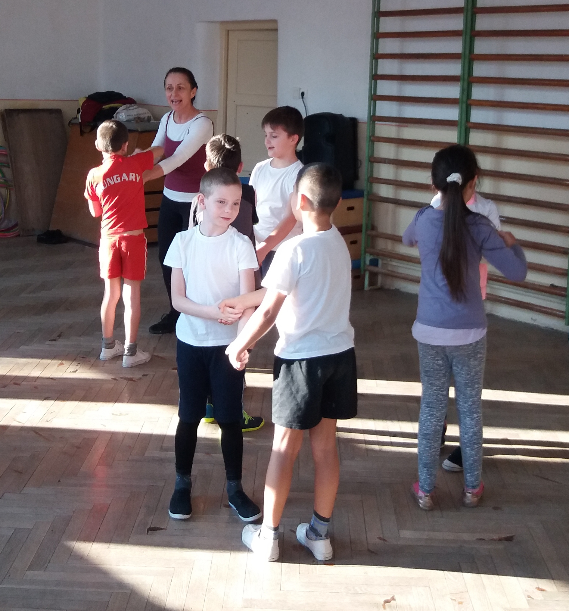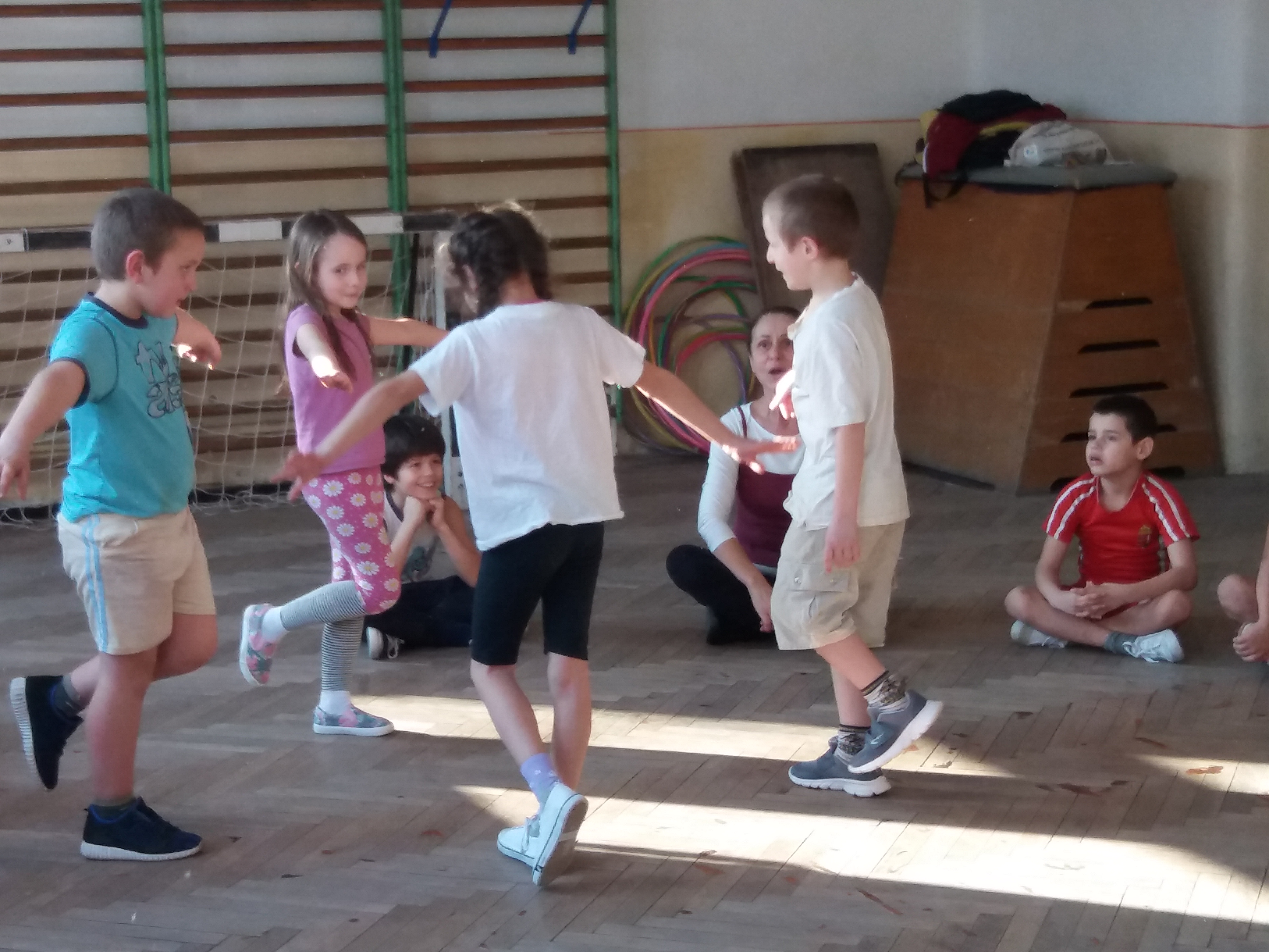 2018.01.23 Tiszalúc - Ugri-bugri csoport félévi bemutatója A sok közös mondóka, éneklés mellett hallhattunk kedvenc kiszámolókat, láthattunk több párválasztós játékot éppúgy, mint páros- és fogójátékot. Visszahozta gyermekkorunk emlékét a bújó-kapuzós játék. A szökellő, ugróköteles játék pedig a ritmikai érzéket erősítése mellett. |