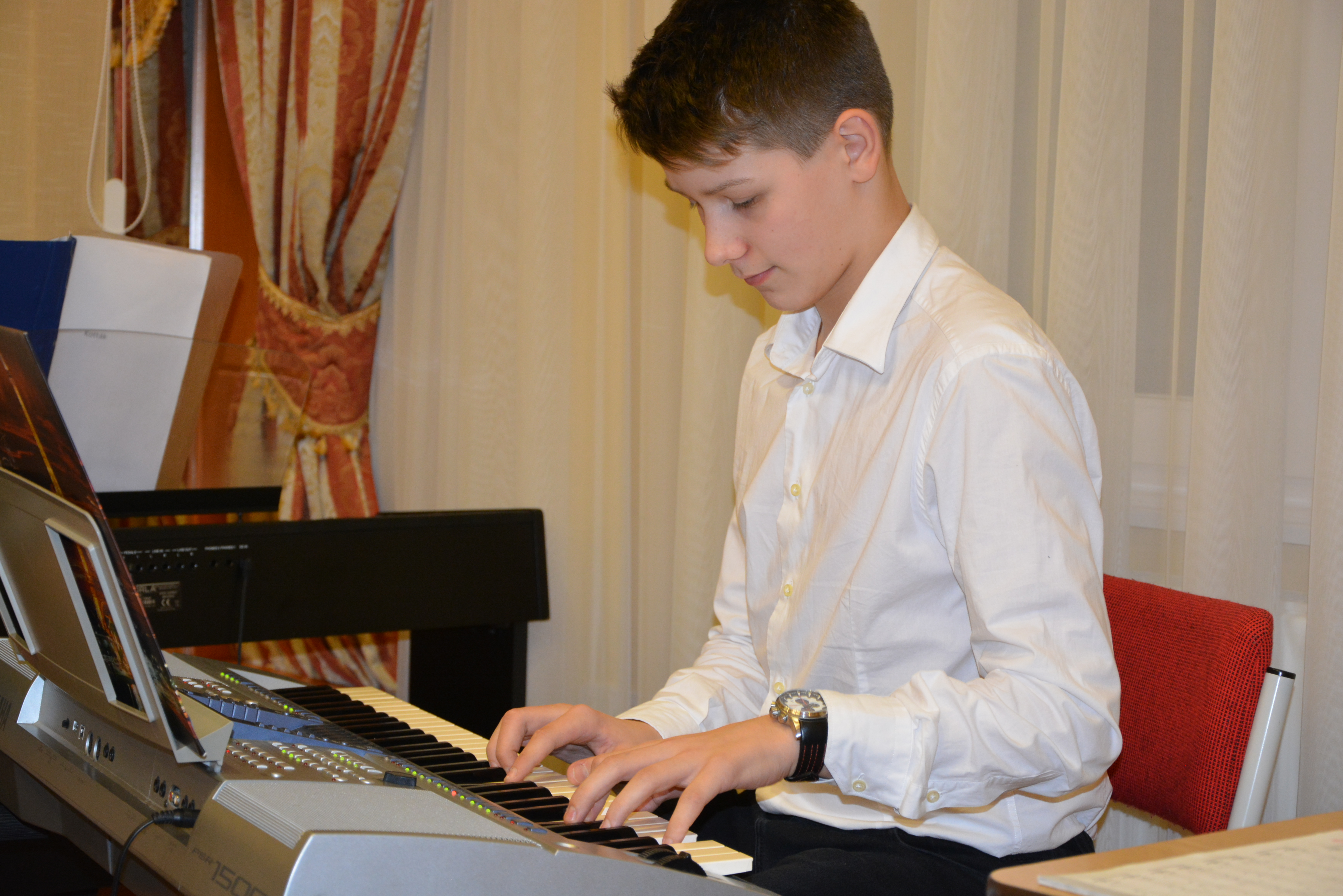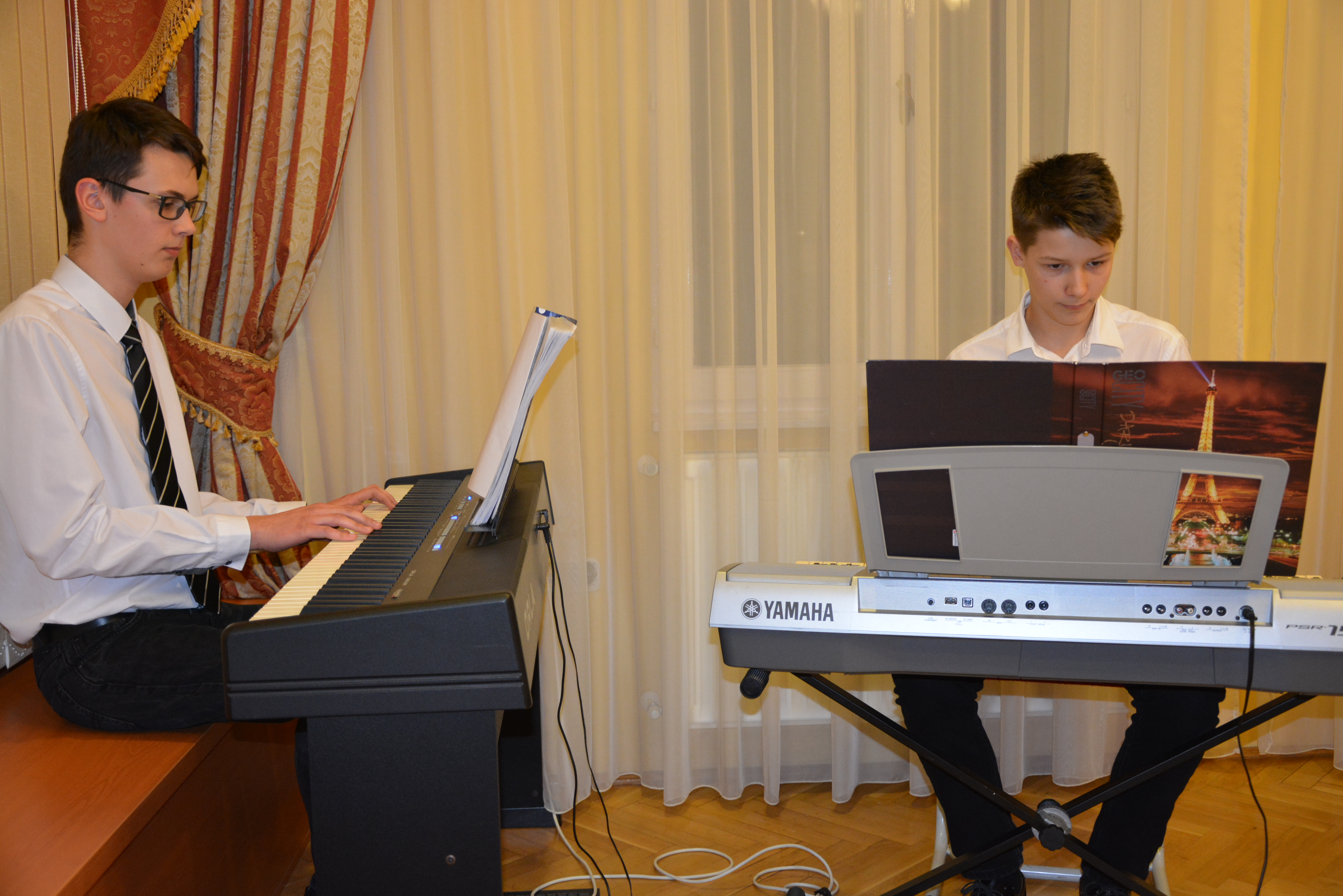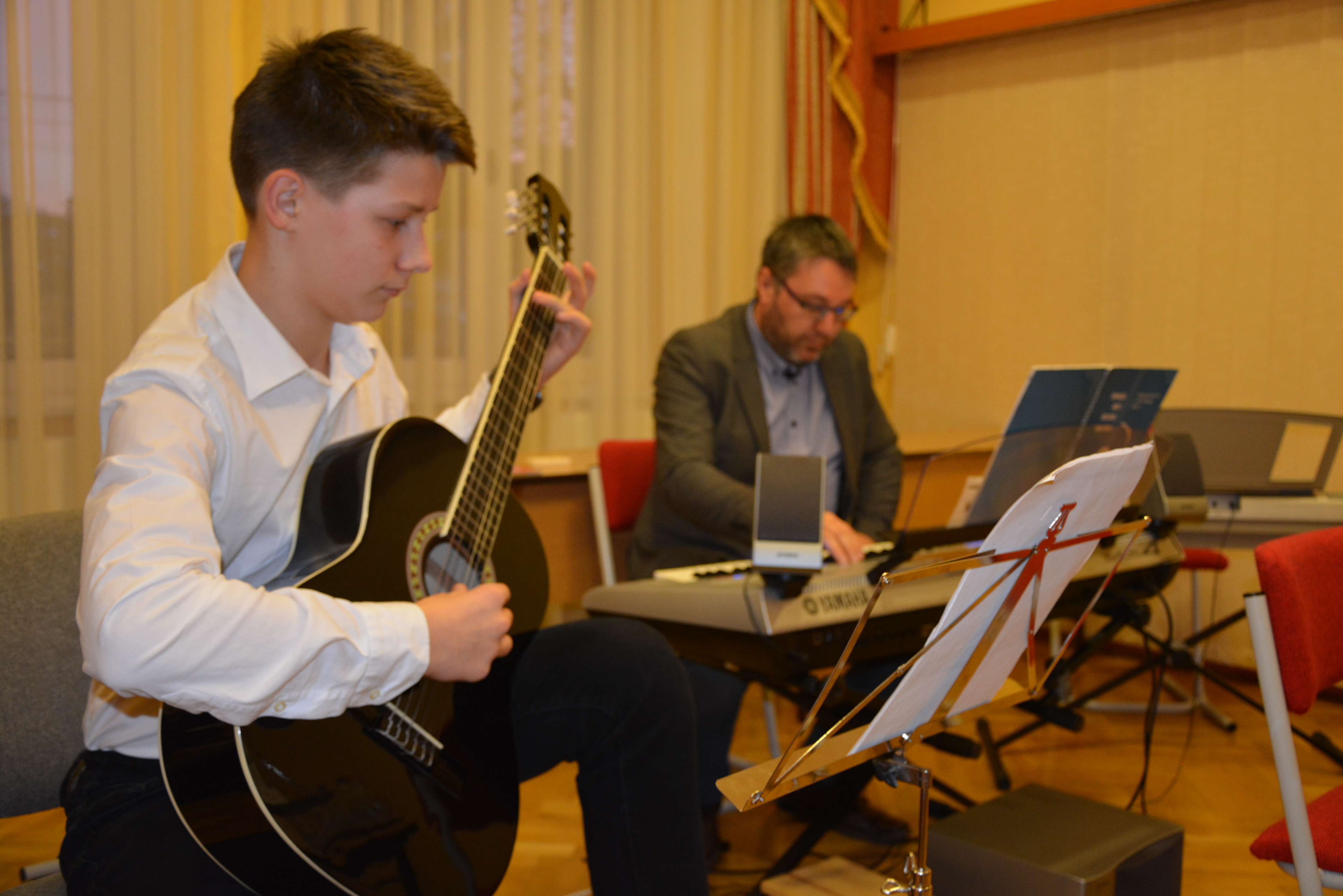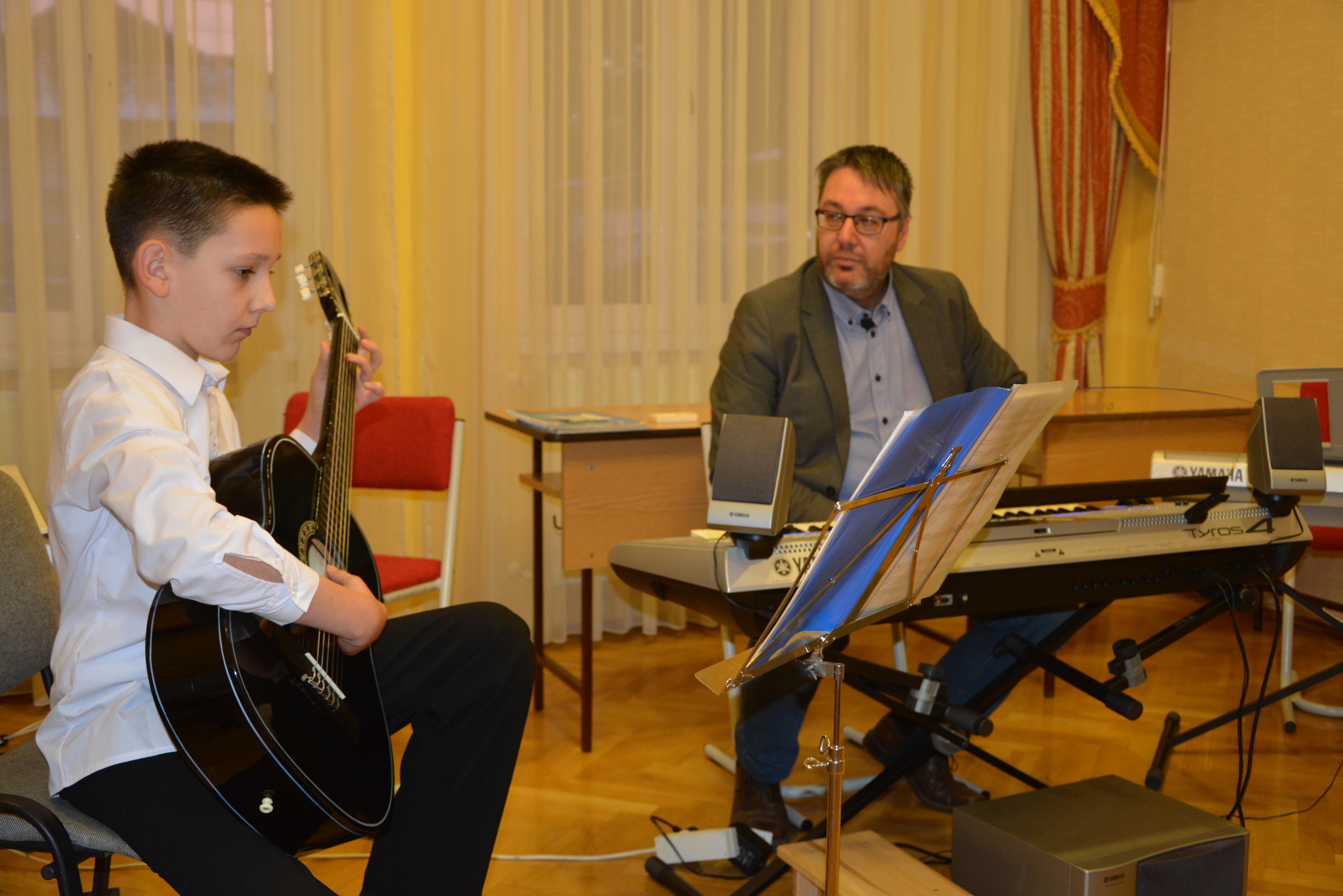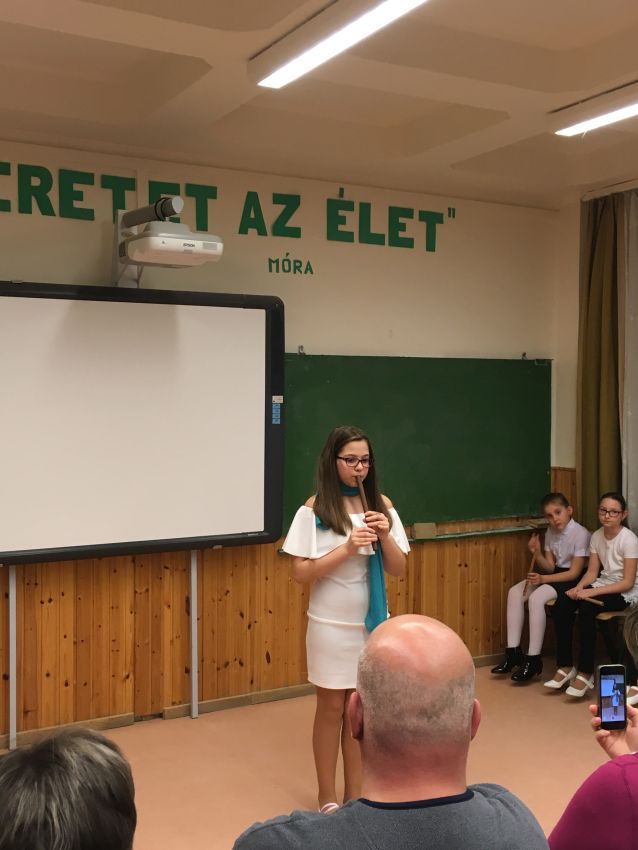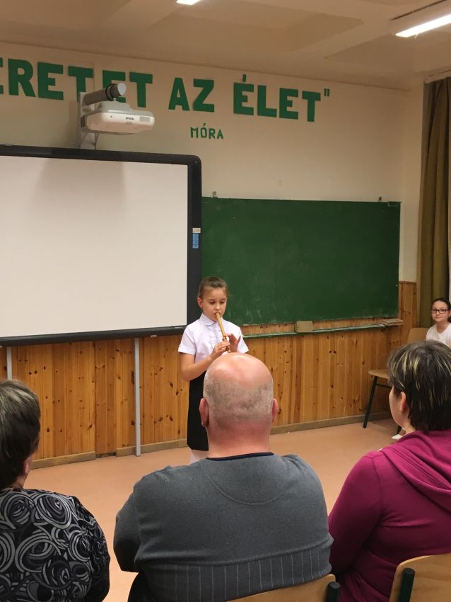 2018.01.31 Félévi népi furulyás tanszaki a nyíregyházi Móra telephelyen 2018. január 31-én 17 órai kezdettel került megrendezésre a nyíregyházi Móra telephely népi furulyás növendékeinek már hagyománnyá vált félévi tanszaki hangversenye. A növendékek a félév folyamán különböző gyermekdalokkal, népdalokkal, székelyföldi dallamokkal és karácsonyi dalokkal ismerkedtek meg. |