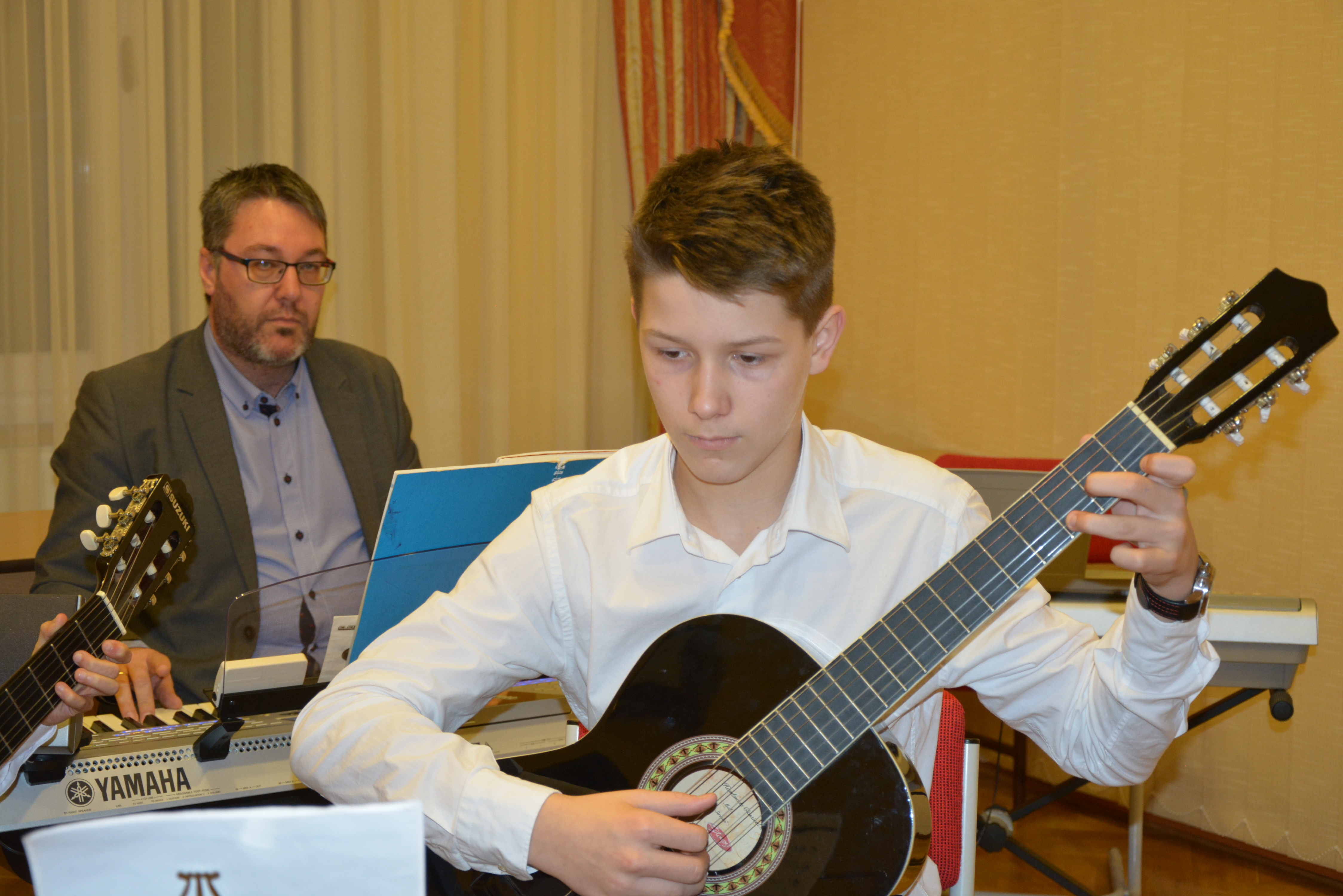 2017.12.18 Eötvös citerásaink Szent István Nemesi Rend Kölcsey Ferenc csoportjának karácsonyi ünnepségén 2017. december 18-án Nyíregyháza-Sóstóhegyen a Szent István Nemesi Rend Kölcsey Ferenc csoportjának karácsonyi ünnepségén adott népzenei műsort 1 citerás és 2 népi énekes növendékünk Eötvös-telephelyünkről. A kisgyermekektől az idősebb korosztályig szívesen hallgatták a karácsonyi népdalokat, a citerajátékot. A szereplők köszönettel fogadták a szervezők kedves vendéglátását. |